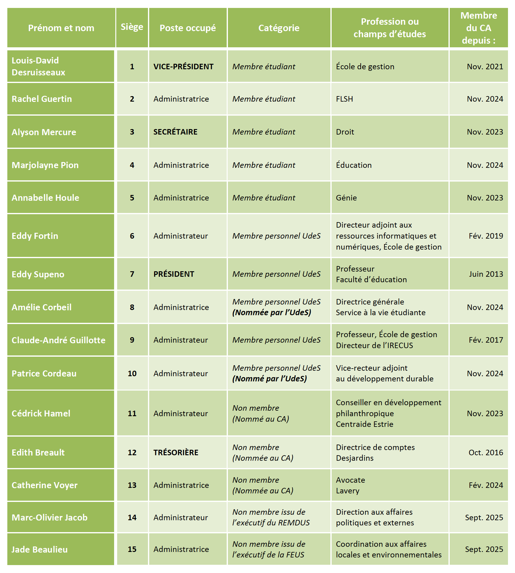 Conseil d’administration 2024-2025 (mise à jour : 17 septembre 2025)